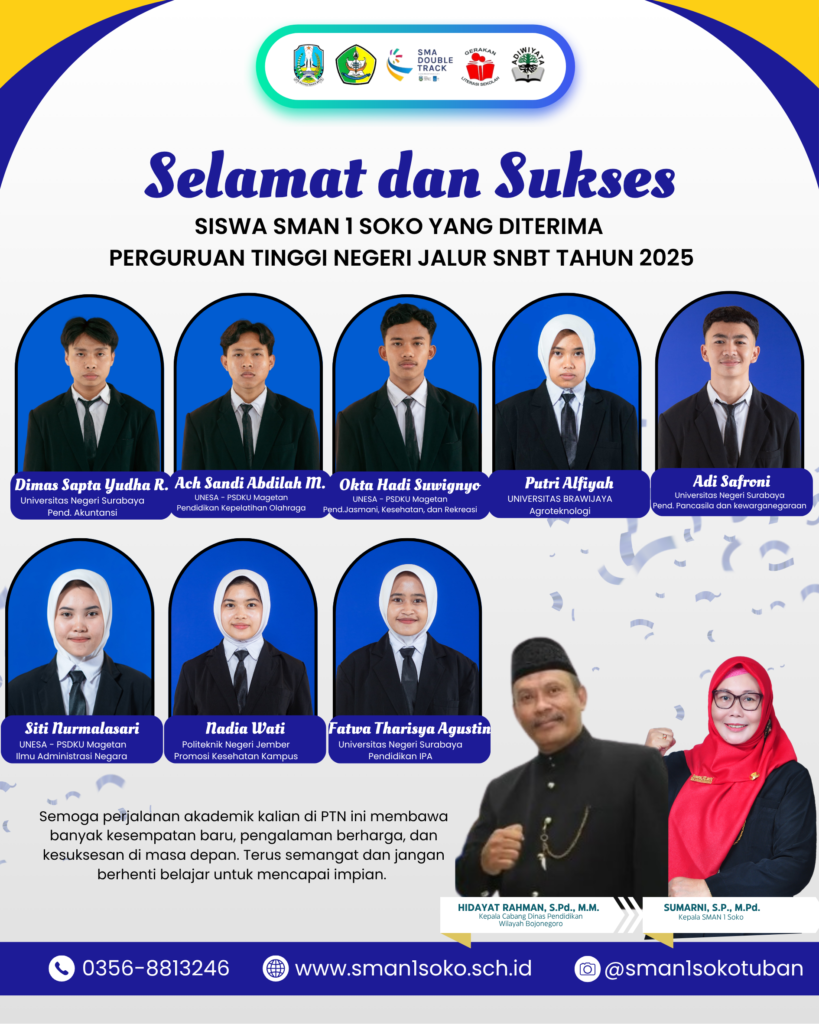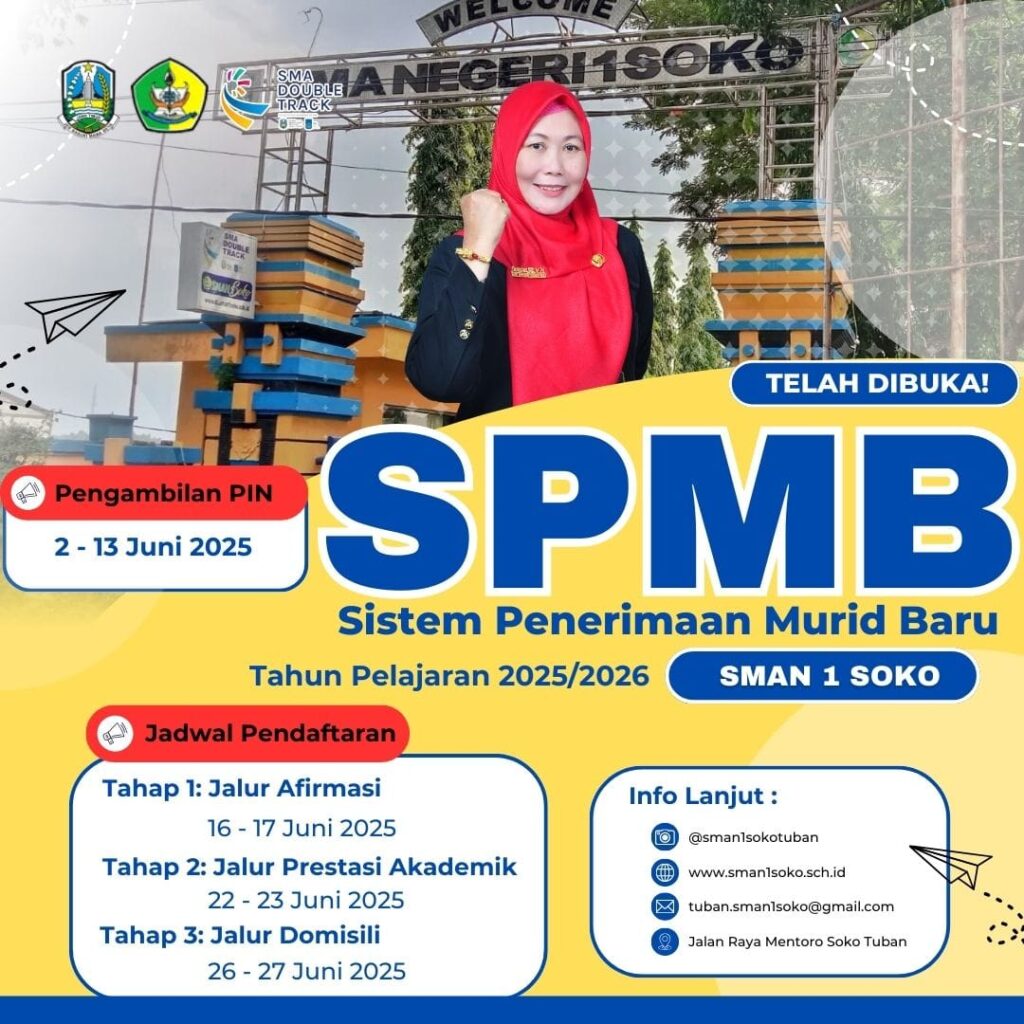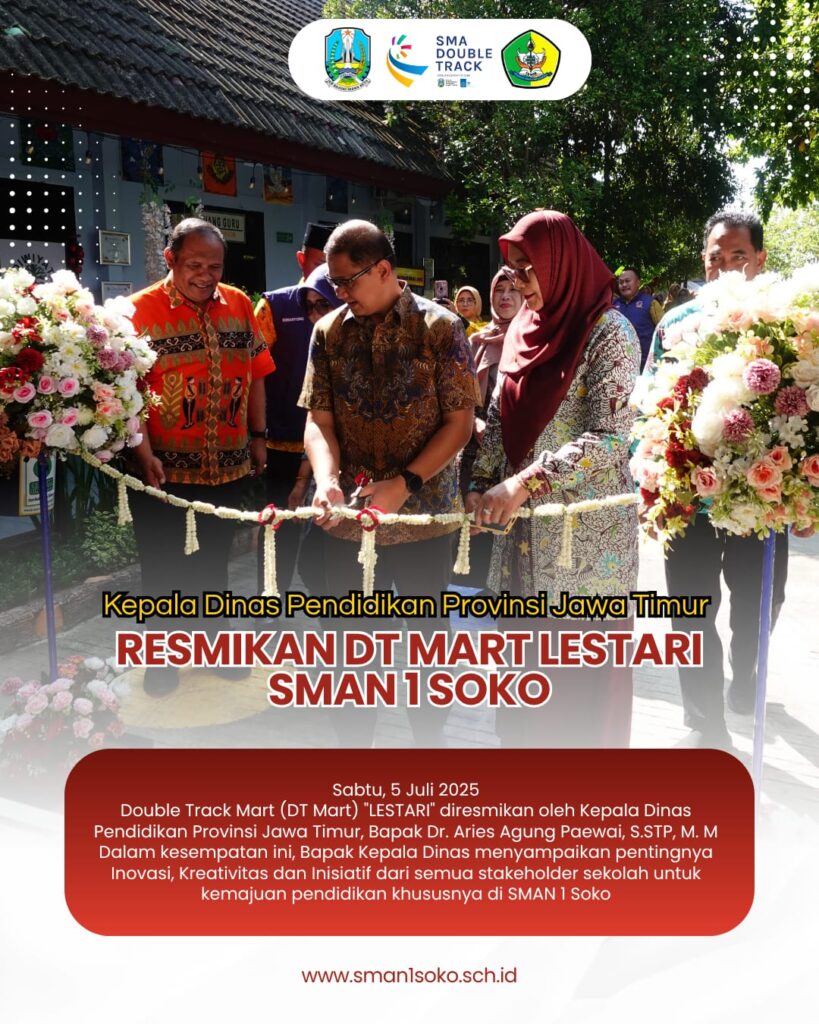 Tuban, 5 Juli 2025 – Pendidikan kewirausahaan dan kreativitas siswa di SMAN 1 Soko semakin mendapatkan dorongan kuat dengan diresmikannya DT MART “LESTARI” SMAN 1 Soko oleh Kepala Dinas Pendidikan Provinsi Jawa Timur, Dr. Aries Agung Paewai, S.STP., M.M. Acara Read more