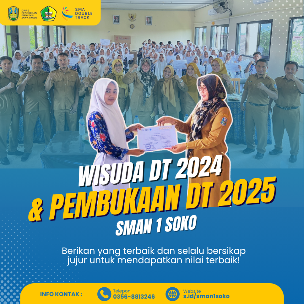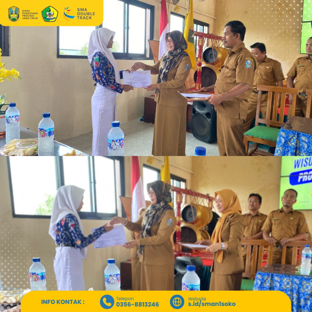 Wisuda Siswa Program Double Track tahun 2024, diawali dengan pembacaan surat keputusan, dan penyerahan sertifikat oleh kepala Sekolah SMAN 1 Soko, ibu Sumarni, SP., M.Pd.